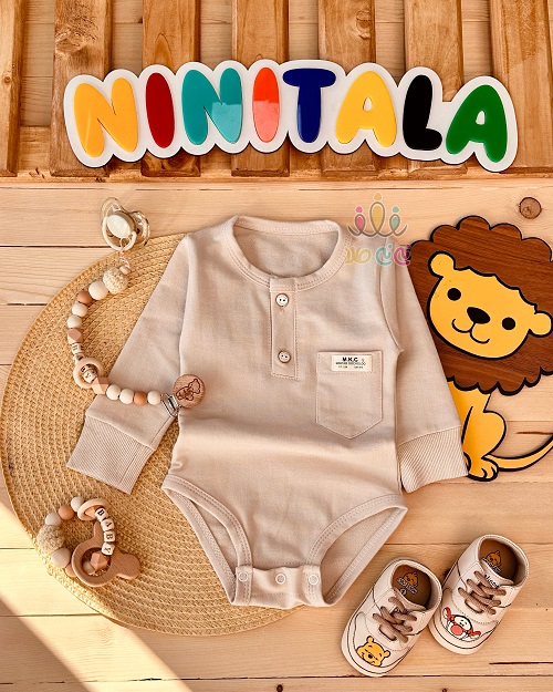 بادی بلند بچه گانه دو دکمه کرمی