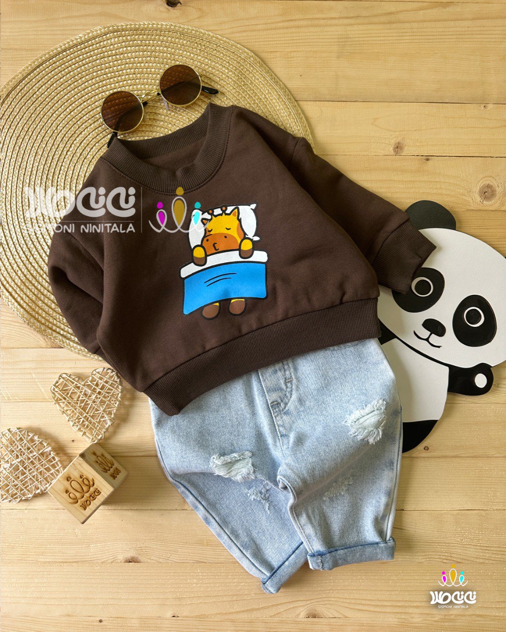 بلوز شلوار جین آبی قهوه ای گاو دخترانه و پسرانه مناسب مهمانی