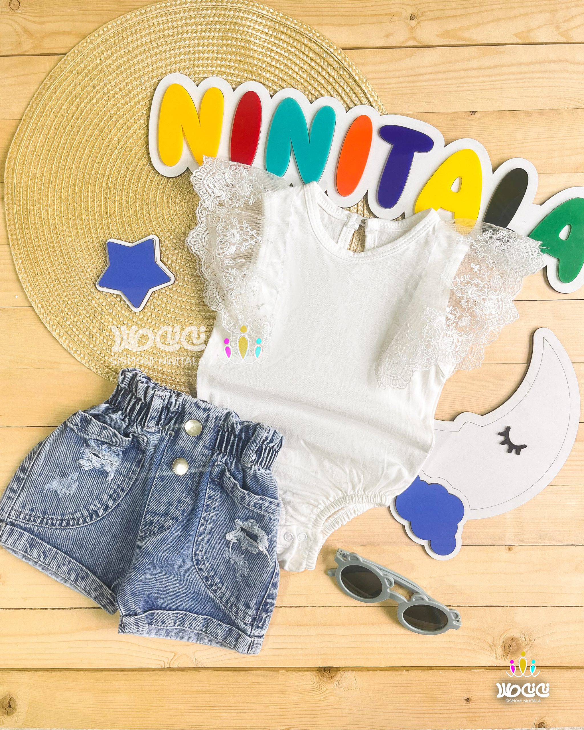 ست بادی شلوارک توری با طراحی شیک و رنگ‌های جذاب. مناسب برای مهمانی‌ها و استفاده روزانه. جنس نرم و راحت، ایده‌آل برای پوست حساس کودکان. خرید آسان و مطمئن.