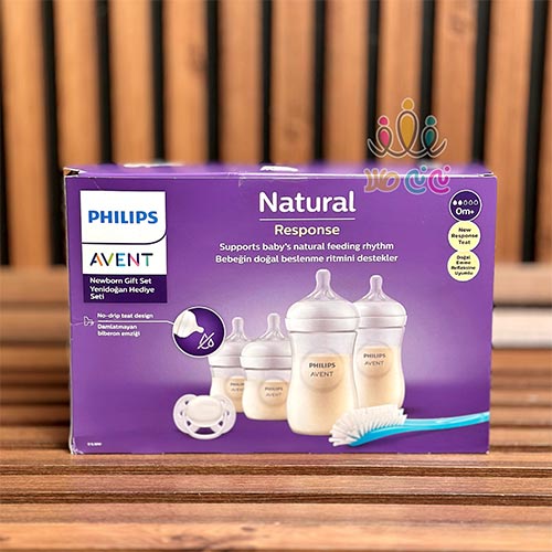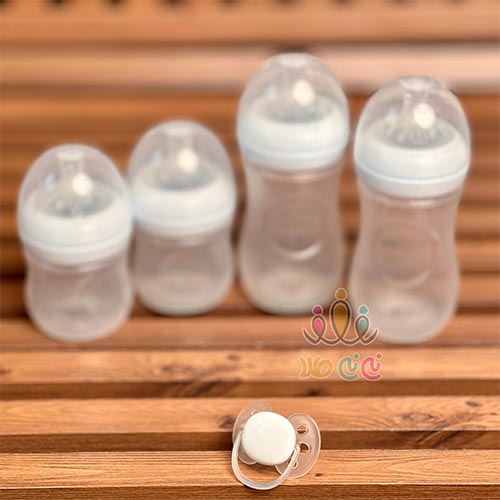 ۲ عدد شیشه شیر ۱۲۵ میلی لیتری با سرشیشه ۲ قطره , ۲ عدد شیشه شیر ۲۶۰ میلی لیتری با سرشیشه ۳ قطره , ۱ عدد پستانک ۰–۶ ماه , ۱ عدد شیشه شوی |