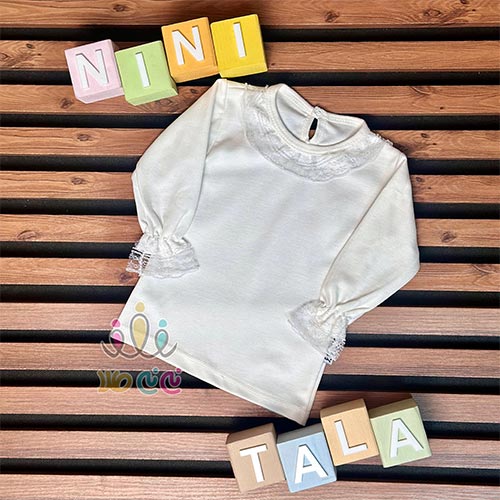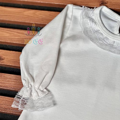 بادی آستین بلند مجلسی دخترانه یقه توری