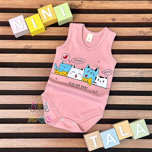 بادی رکابی حروف رنگی سفید , بادی رکابی خرگوش قلب سفید , بادی رکابی خرس خطی نسکافه ای , بادی رکابی گربه funny صورتی |