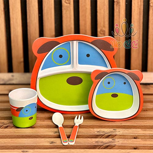 ست ۵ تکه ظرف غذا بامبو کودک حیوانات