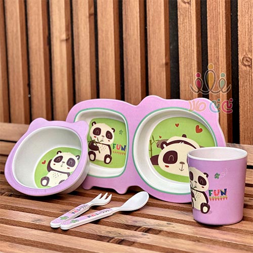 ست ۵ تکه ظرف غذا بامبو کودک طرح جنگل و پاندا Fun
