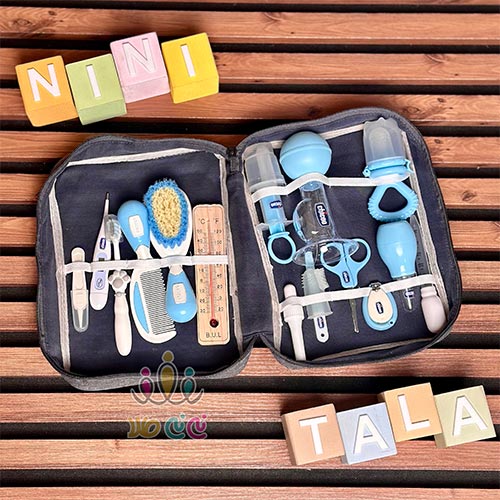 دماسنج , تب سنج , شانه , برس مویی , مسواک , مسواک انگشتی , داروخوری , عصاره خوری , پوآر بینی , ناخن گیر , قیچی , سوهان ناخن , پنس , شیردوش دستی , دو عدد قطره چکان |