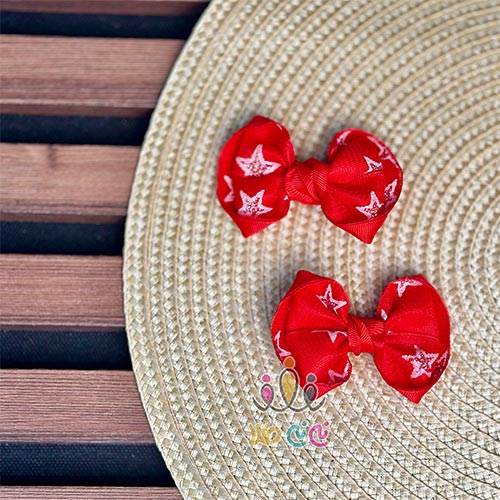 گیره پاپیون قرمز با نوار طلایی , گیره پاپیون طرح گوچی , گیره پاپیون قرمز مشکی , گیره پاپیون ستارهای قرمز |