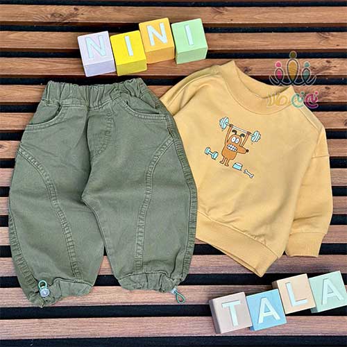 ست بلوز و شلوار اسپرت بچگانه کتان اسپوکی