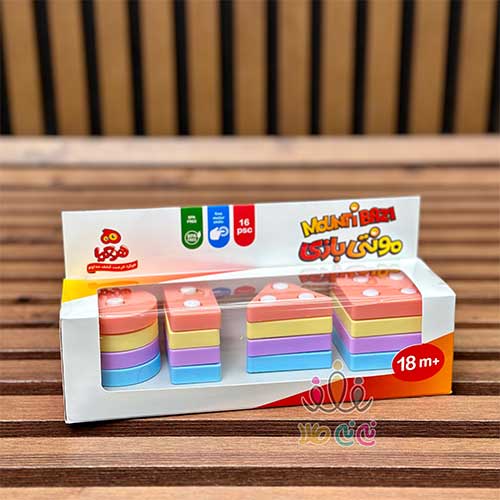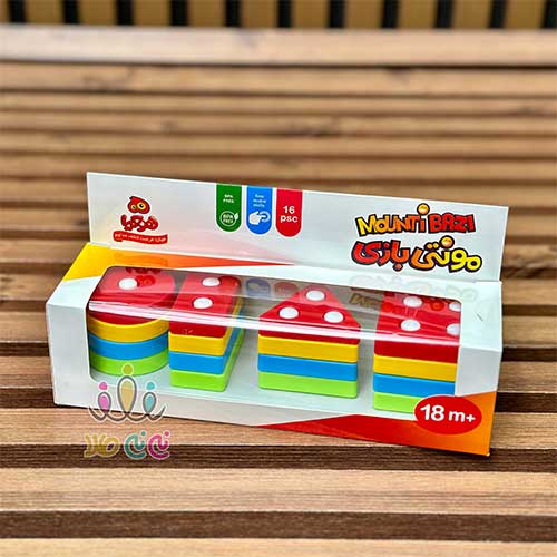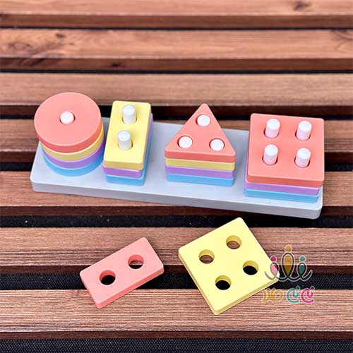 - بازی جایگذاری اشکال هندسی ( شامل ۱۶ قطعه از اشکال مربع، مثلث، مستطیل، دایره )، باعث پرورش روحیه نظم پذیری کودک می شود!