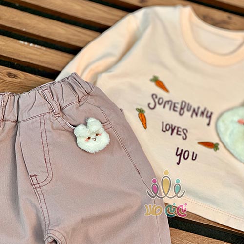 ست دو تکه بلوز شلوار دخترانه کتان مدل رکسانا
