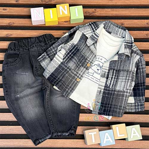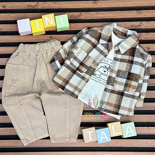 - ست کامل سهتکه شامل: بلوز، شلوار و شکت پشمی