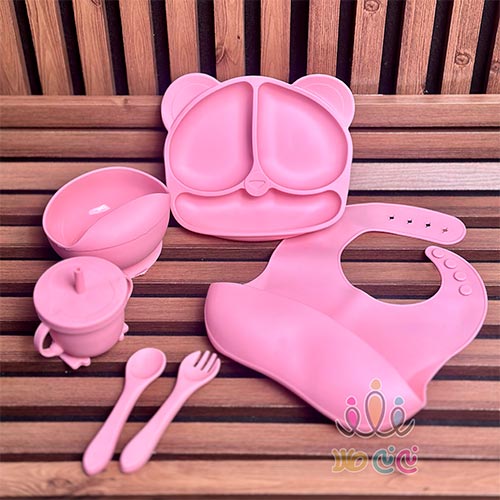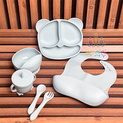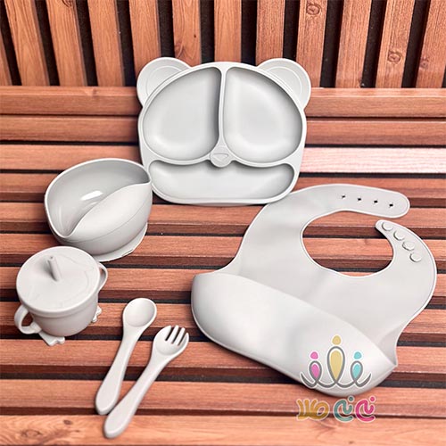 - ست غذاخوری سیلیکونی نوزاد ۸ تکه با طرح خرس