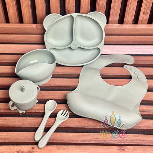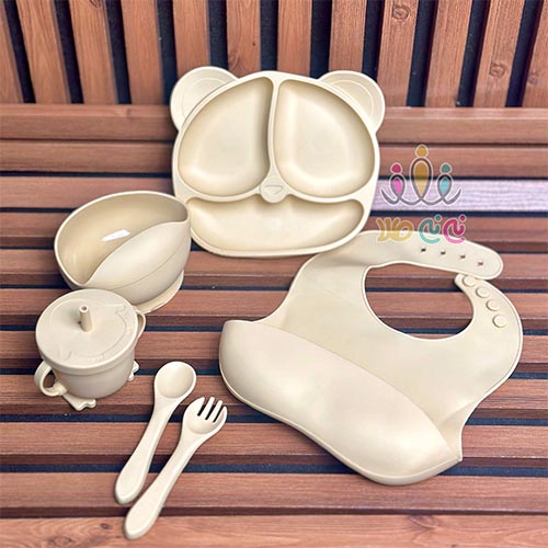 ست غذاخوری سیلیکونی نوزاد ۸ تکه طرح خرس