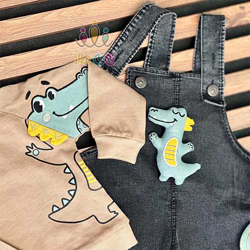 ست سه تکه پاپوش دار طرح کروکدیل سبز