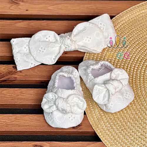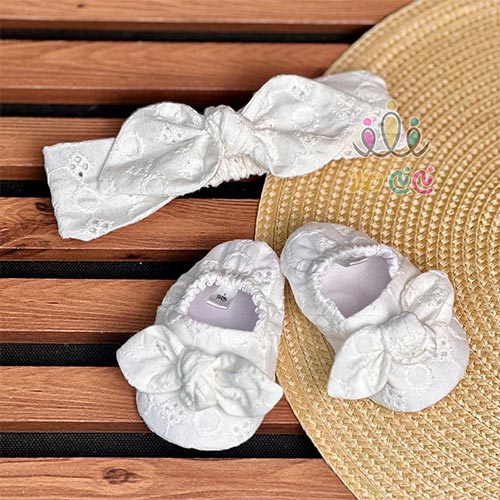 ست هد و پاپوش نوزادی خامه دوزی سفید